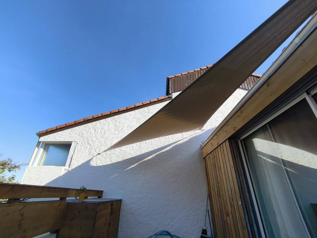 Cette voile d’ombrage sur mesure est fixée directement sur la façade du batiment.
